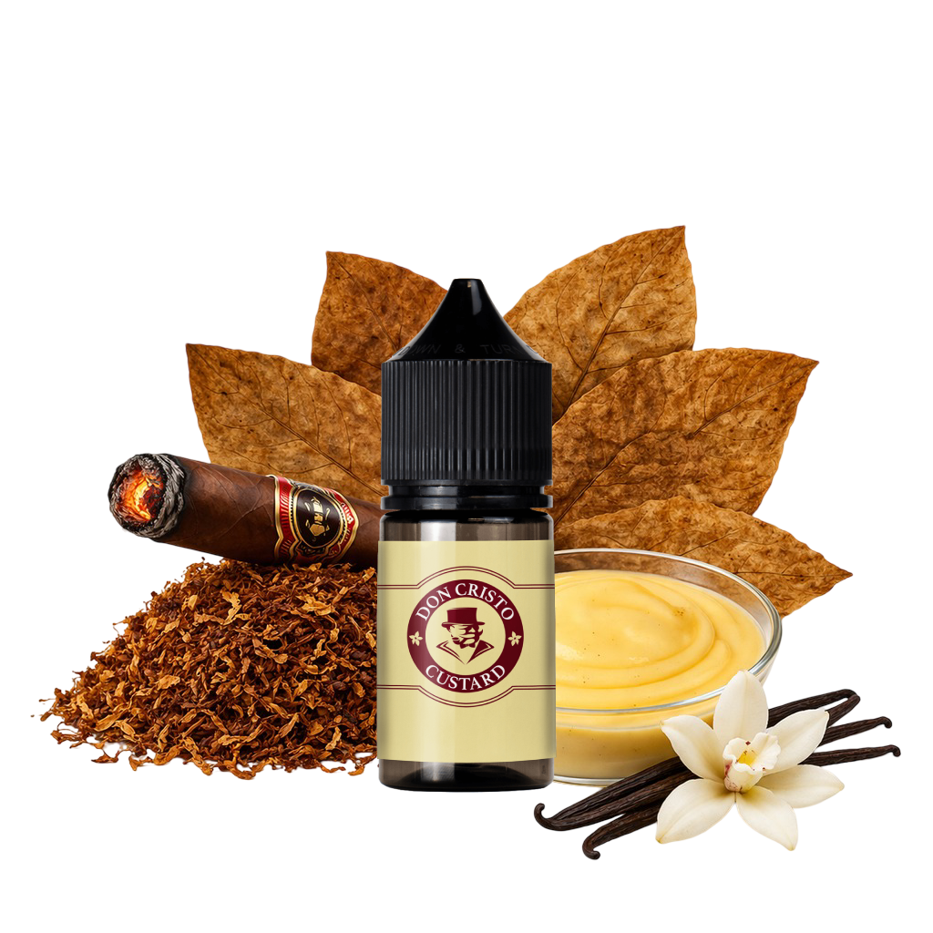 Le Don Cristo Custard de PGVG Labs associe la richesse d’un cigare cubain à la douceur d’une crème custard à la vanille. Issu d’un macérat de feuilles de tabac, il offre une vape intense et structurée, enrichie par une note gourmande parfaitement maîtrisée.